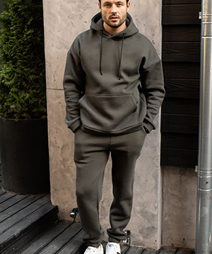 Теплый спортивный мужской костюм хаки с капюшоном К-789