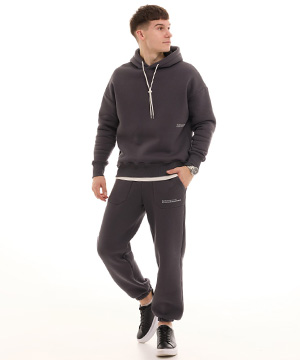 Теплый темно серый мужской спортивный костюм на зиму К-966