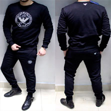 Мужской брендовый костюм Armani черного цвета с большим принтом на передней части. Этот костюм благодаря своему крою замечательно подчеркивает все достоинства фигуры, при этом совершенно не сковывает движений, идеальный вариант для бега или занятий другими видами спорта.