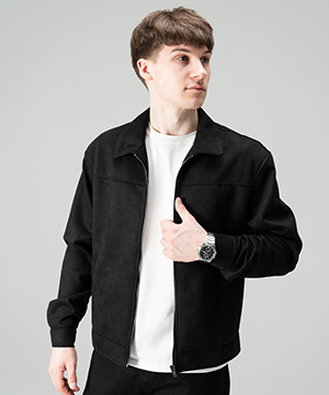 Чорна чоловіча весняна куртка замшева з коміром К-1583