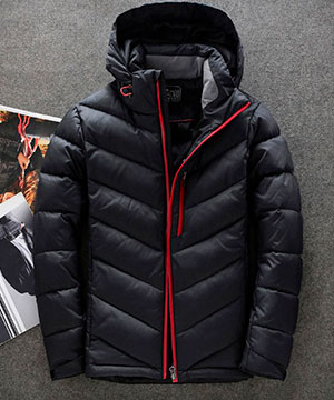Стеганый мужской пуховик на утином пуху.Красный с черным всегда завораживает.Так и эта модель черного цвета с красными молниями делает вам вызов.Стильная,практичная,удобная плюс качество материала и фурнитуры.