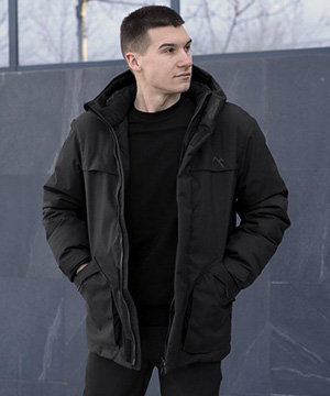 Чорна чоловіча зимова парка Pobedov з капюшоном К-1474