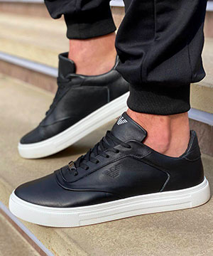 Чорні кеди з натуральної шкіри з білою підошвою Т-623