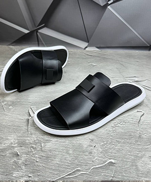Чорні шкіряні чоловічі шльопанці з натуральної шкіри Т-935