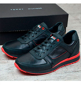 Чорні кросівки Hilfiger з червоною підошвою Т-157