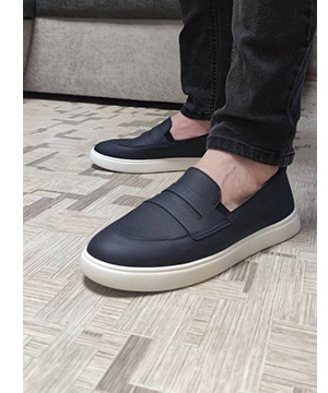 Чорні чоловічі лофери з натуральної шкіри з білою підошвою Т-933