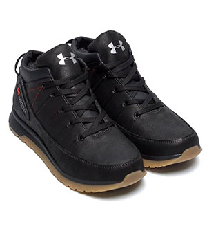 Чорні чоловічі теплі шкіряні кросівки на зиму Т-729