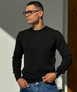 Чорний чоловічий тонкий светр на осінь Т-1300