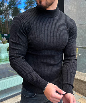 Чорний чоловічий турецький гольф у смужку Т-1009