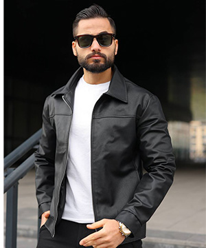 Шкіряна куртка чоловіча з класичним коміром К-1604