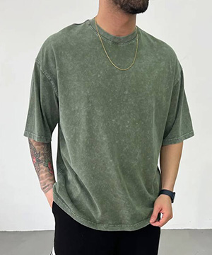 Модная футболка Acid Wash свободного кроя в зеленом цвете Ф-1507 - Made in Turkey ( топ качество )