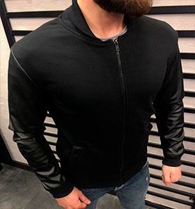 Модный мужской бомбер с кожаными рукавами К-234 купить