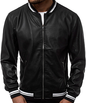 Чоловіча шкіряна куртка зі штучної шкіри з перфорацією (кожзам) К-344