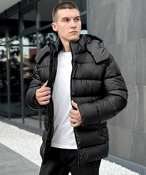 Стильна чоловіча чорна зимова стьобана куртка зі знімним капюшоном К-1471