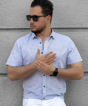 Стильна сорочка з коротким рукавом у блакитному кольорі Р-1517