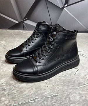 Стильні чоловічі шкіряні черевики з блискавкою на зиму Т-842