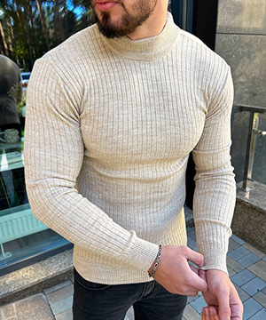 Стильний бежевий чоловічий гольф у смужку Т-1008