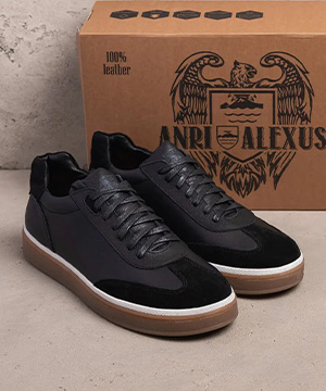 Стильні чорні чоловічі кеди з коричневою підошвою Т-1028