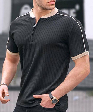 Стильне чорне чоловіче поло на змійці Ф-1264