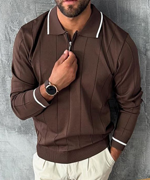 Темно коричневый джемпер на молнии Т-1310 Стильный легкий джемпер на молнии под шею