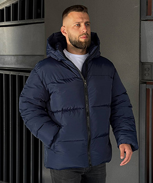 Темно синій зимовий теплий пуховик з капюшоном К-1466