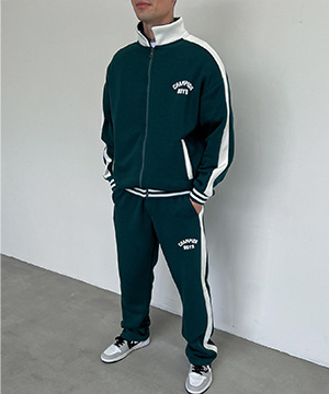 Теплий чоловічий оверсайз костюм Champion Boys на флісі у зеленому кольорі К-953