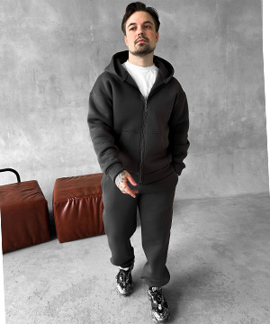 Теплий чоловічий спортивний костюм на блискавці графіт із капюшоном на флісі К-960