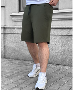 Чоловічі трикотажні шорти хакі з акцентними швами С-686