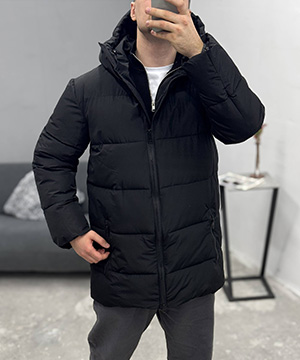 Зимова чоловіча подовжена чорна куртка чорна на пуху К-1515