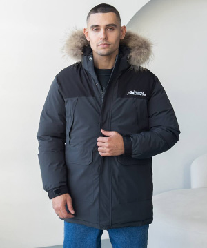 Удлиненная мужская теплая зимняя куртка с мехом на капюшоне К-1544