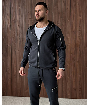 Весенний спортивный костюм со змейками и кофтой с капюшоном К-998