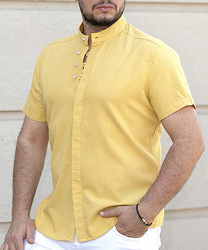 Желтая рубашка мужская с коротким рукавом на пуговицах Р-1525