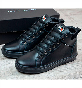 Зимние мужские ботинки TOMMI HILFIGER на натуральном меху.Модель изготовлена из натуральной кожи черного цвета,шнурки на силиконовой основе,подошва из морозоустойчевого термопласта.Все материалы отличного качества.Стильные и комфортные ботинки.
