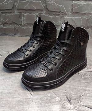 Зимние мужские ботинки Plein из плетеной кожи Т-307