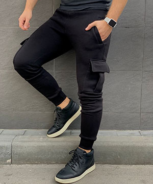 Зимние мужские черные карго штаны с карманами на флисе Б-187
