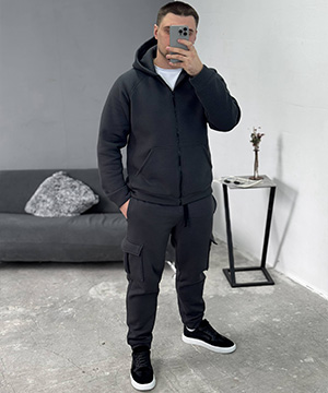 Зимний мужской костюм на молнии с капюшоном штаны карго К-955